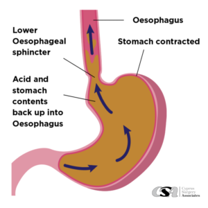 Whether this acid reflux is accompanied by GERD symptoms or not, stomach acid and chemicals wash back into the esophagus, damaging esophagus tissue and triggering changes to the lining of the swallowing tube, causing Barrett’s esophagus.