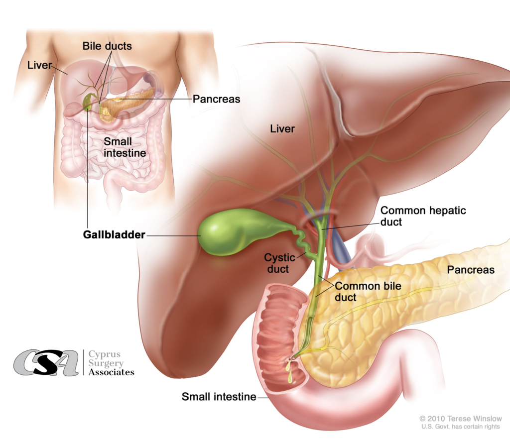Your gallbladder is a small, pear-shaped organ on the right side of your abdomen, just beneath your liver. The gallbladder stores bile, a digestive fluid produced by your liver.