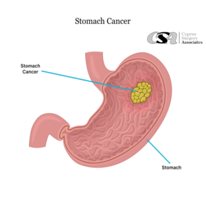 Gastric cancer is an abnormal growth of cells that begins in the stomach. The stomach is a muscular sac located in the upper middle of your abdomen, just below your ribs. Your stomach receives and holds the food you eat and then helps to break down and digest it.